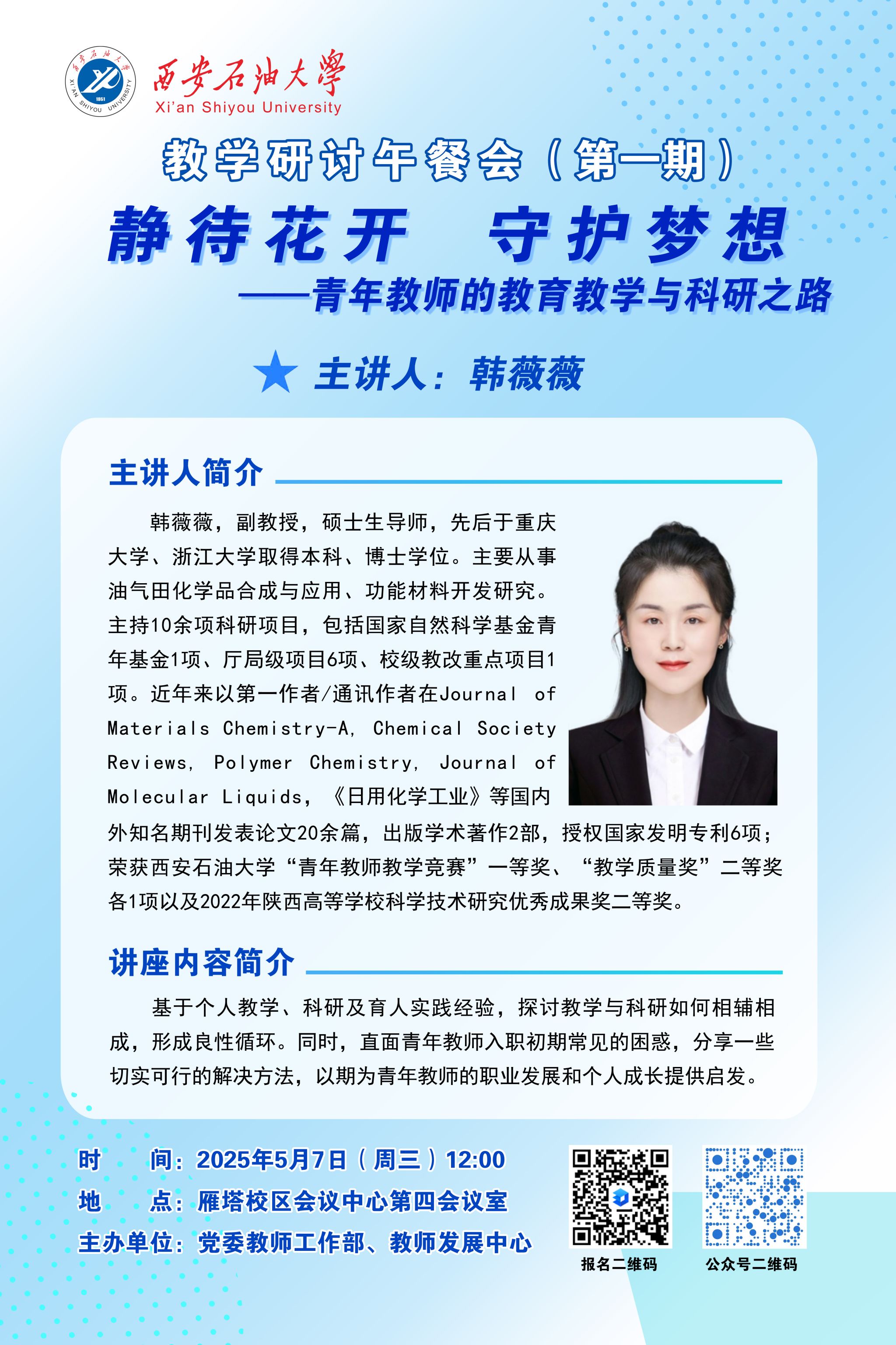 報(bào)告地點(diǎn):鄠邑校區(qū)弘石學(xué)術(shù)報(bào)告廳