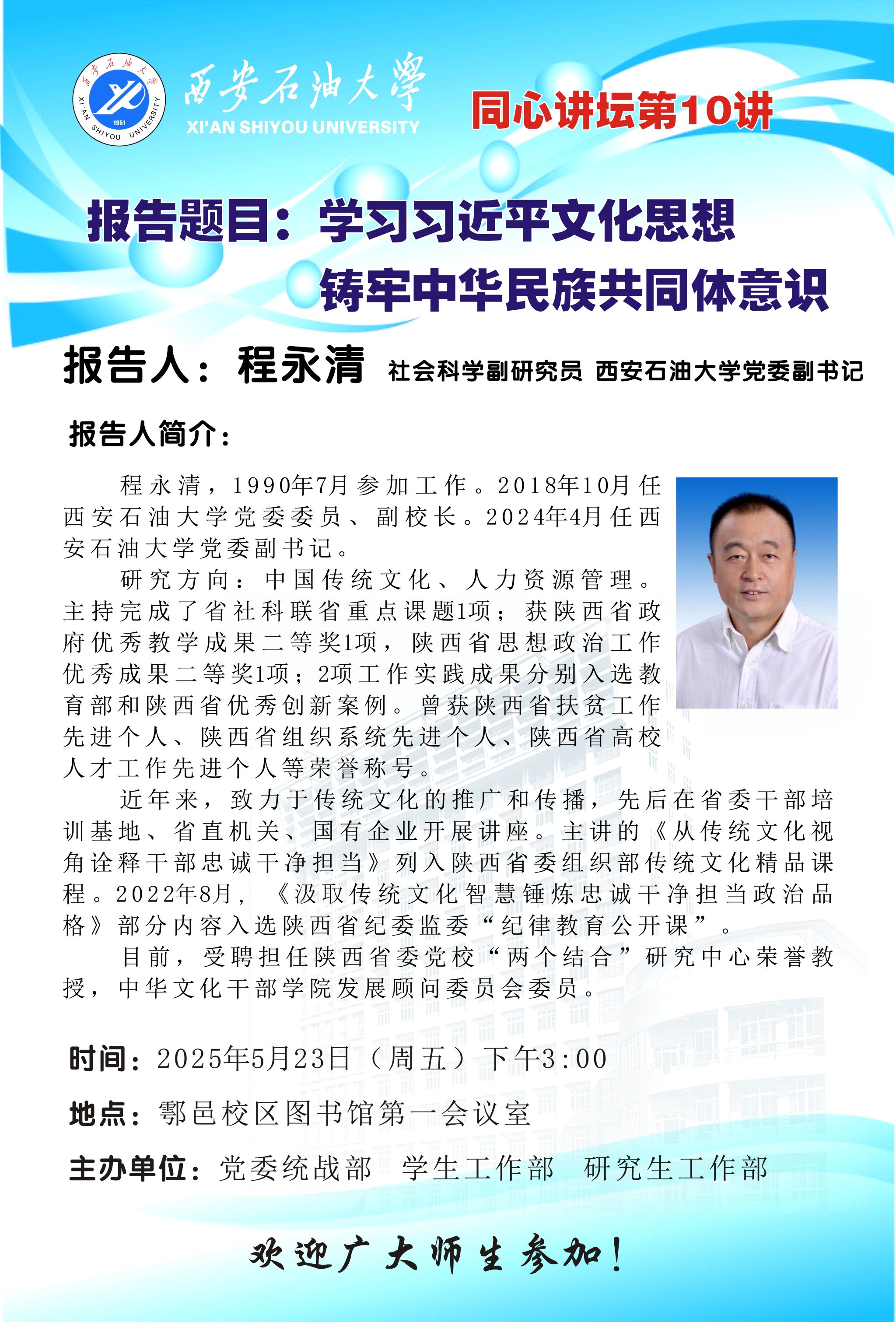報(bào)告地點(diǎn):鄠邑校區(qū)弘石報(bào)告廳