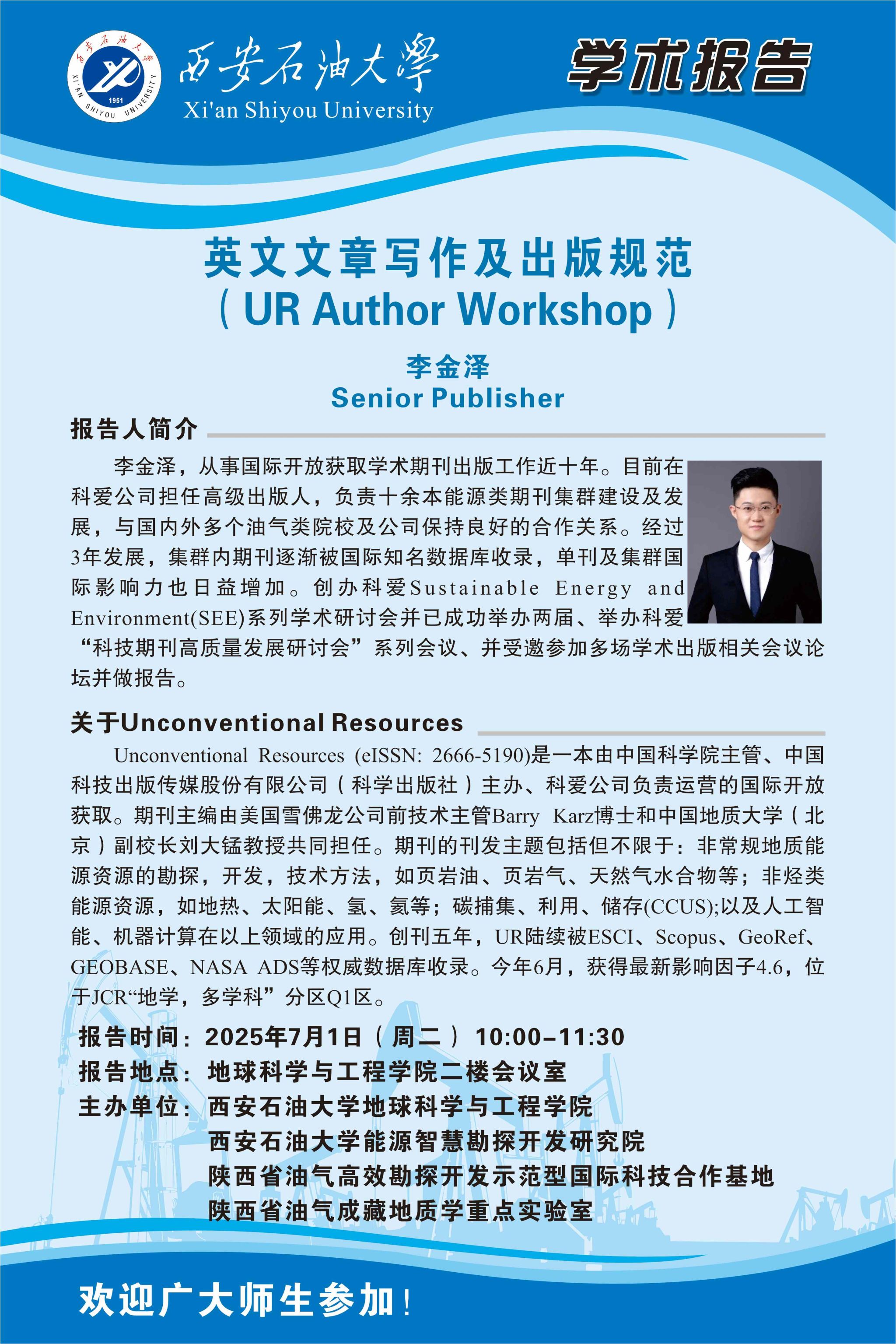 報告地點:地球科學(xué)與工程學(xué)院二樓會議室