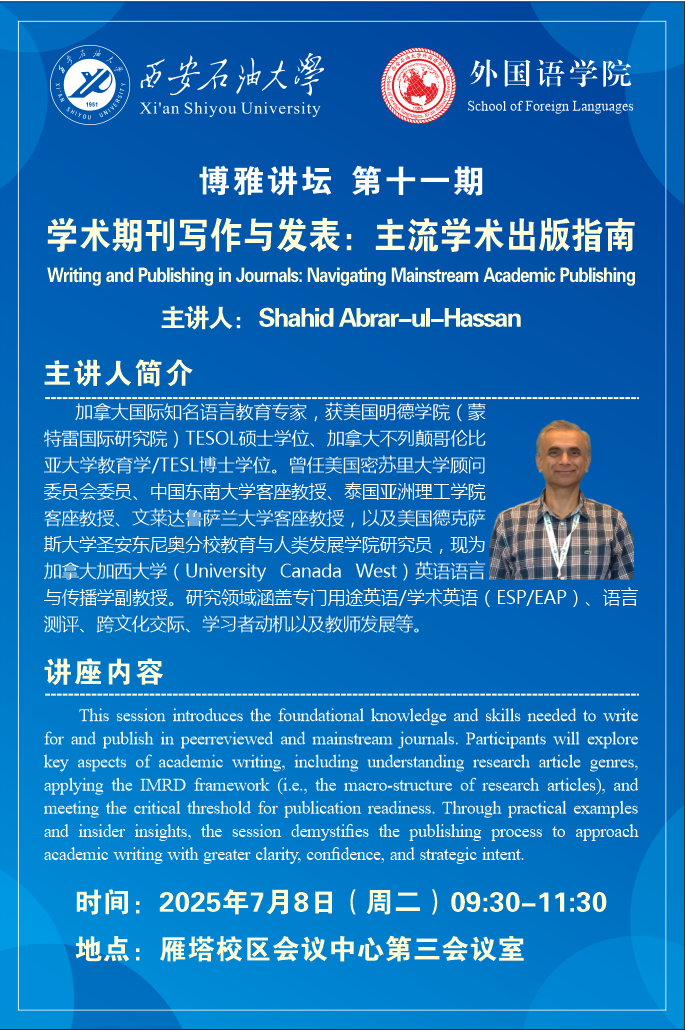 報告地點:鄠邑校區(qū)弘石學(xué)術(shù)報告廳