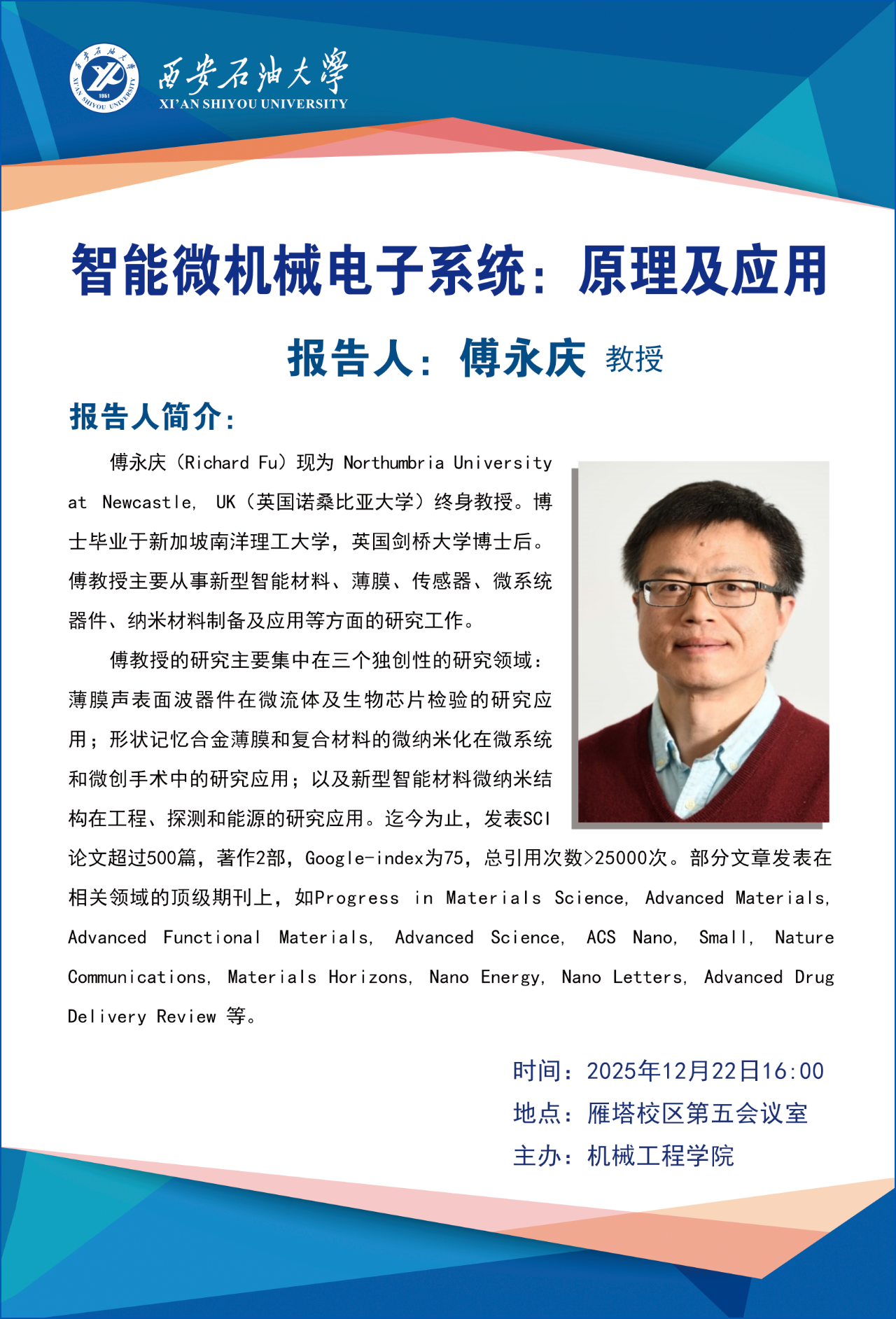 報告地點:雁塔校區(qū)會議中心學術(shù)報告廳