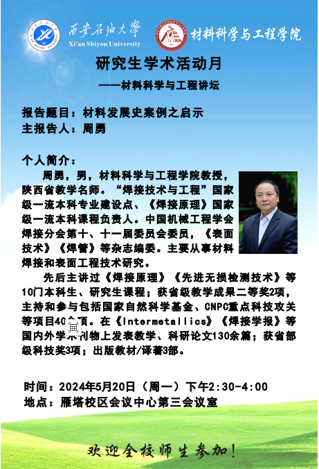 報(bào)告地點(diǎn):鄠邑校區(qū)弘石報(bào)告廳